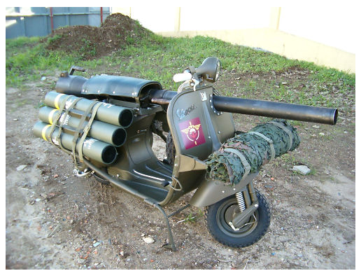 Nobody is going to argue with you if you’re driving this bazooka equipped Vespa! Road legal, (apparently!) and available now here on eBay for a smidgin short of twenty grand.