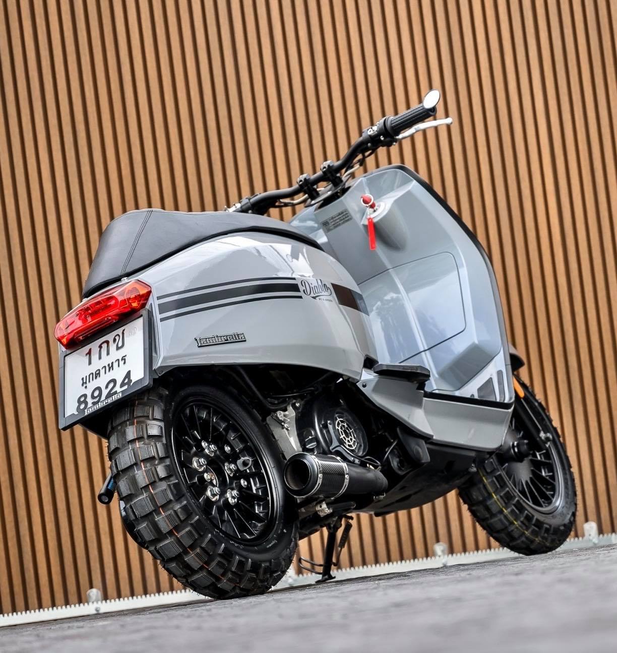 You know a scooter model has “arrived” when custom shops start modifying it! Almost sInce day one of the Lambretta – people have been customising them – this latest – and I’ve got to say totally fantastic looking – custom comes out of K-Speed – a custom bike shop in Bangkok Thailand – taking the aggressive lines and stance of V-Special as it’s base – and running with it. Excellent work chaps!