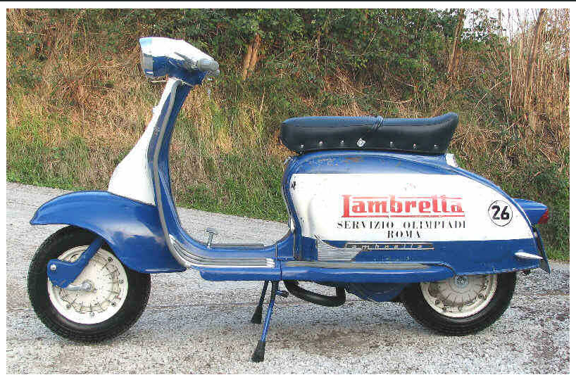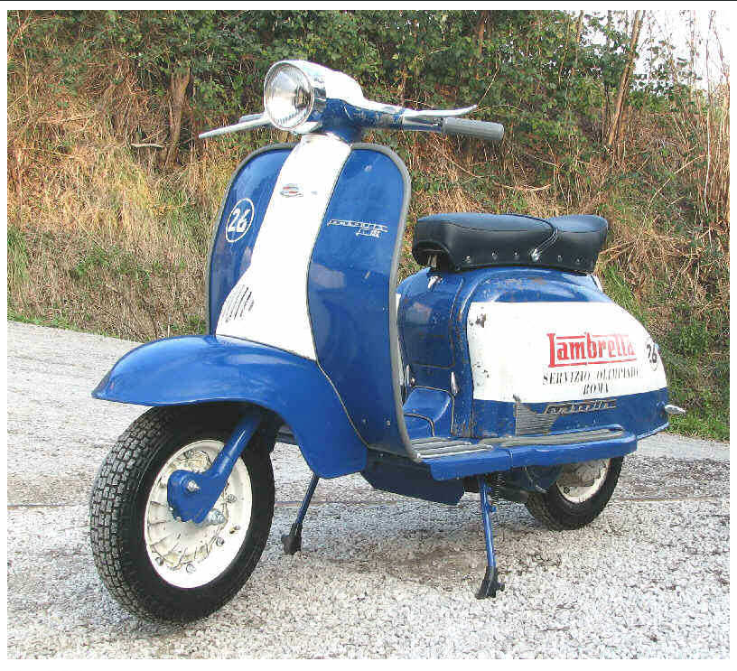 While we are engrossed in the London 2012 Olympics, there are not many Lambretta’s on view… (UPDATE: A secret source tells me that classic scooter fans may be in for a pleasant suprise at the closing ceremony. I’m saying no more!!) unlike the 1960 Olympics in Rome, where Innocenti supplied 80 scooters (as well as 20 Lambros and 2 Helicopters!) for the use of athletes, officials and the press. This must have been quite a coup for Innocentini …the Vespa marketing department must have been kicking themselves! I wonder if Cassius Clay rode a Lambretta before he went on to win his Gold medal… no there’s a picture I would like to see!