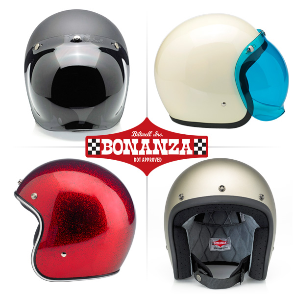 More to my taste, were these from Biltwell, which I was sent to by vegansydney. Proper old school looks, and a nice range of open and full face lids. Prices are more pocket friendly too… the fullface “Gringo” model (DOT approved), coming in at a pocket friendly $149. I’m particularly fond of the “Gloss Hazard Orange” Gringo. The Gingo is only shown with bubble visors, (which I love on an open face helmet), but am not sure about on a full face. Thoughts? The open face Bonaza helmets look purty too… from class white, to matt black and metalflakes. Something to pretty much match any Lambretta then. Check out the Biltwell site here.