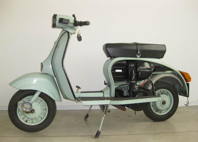 A new one on me – how about this 1960’s effort from Royal Enfield India – The Royal Enfield Fantabulous (or maybe Fantabulus). Now, it would be tempting to say the best thing about this scooter was the name… but, give it a look over, and it’s not a bad looking scoot. It sits a ‘little funny’ seeming have quite a nicely designed body riding ridiculously high on it’s wheels. This is particulary obvious at the front of the scooter, where tge (Lambretta style) fixed front mudguard looks like it’s been bolted on far too high up the legshields! The front wheel suspension system looks clunky and overly complicated, too, especially when you compare it to the set-up of a classic Lambretta or Vespa.