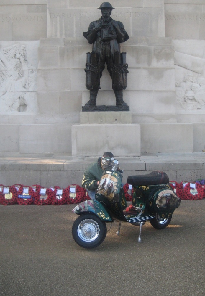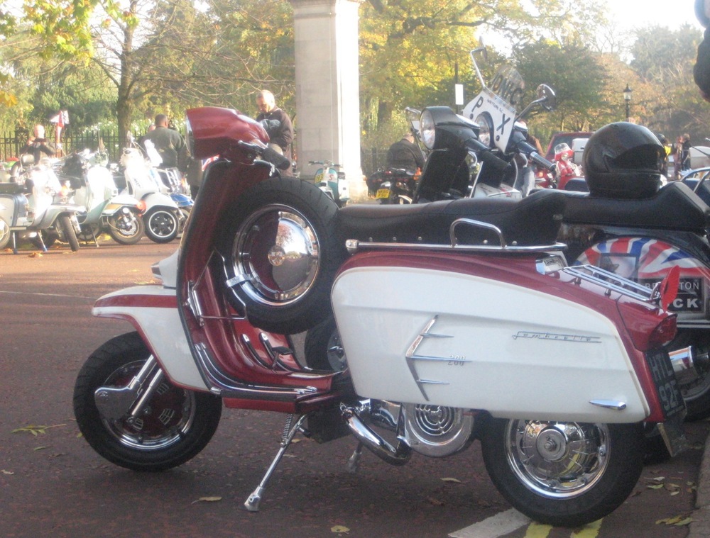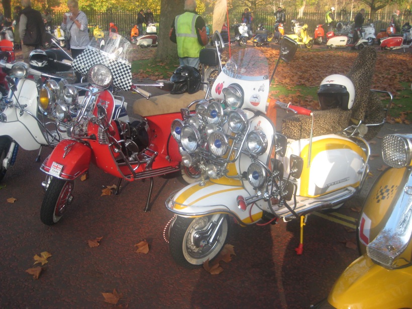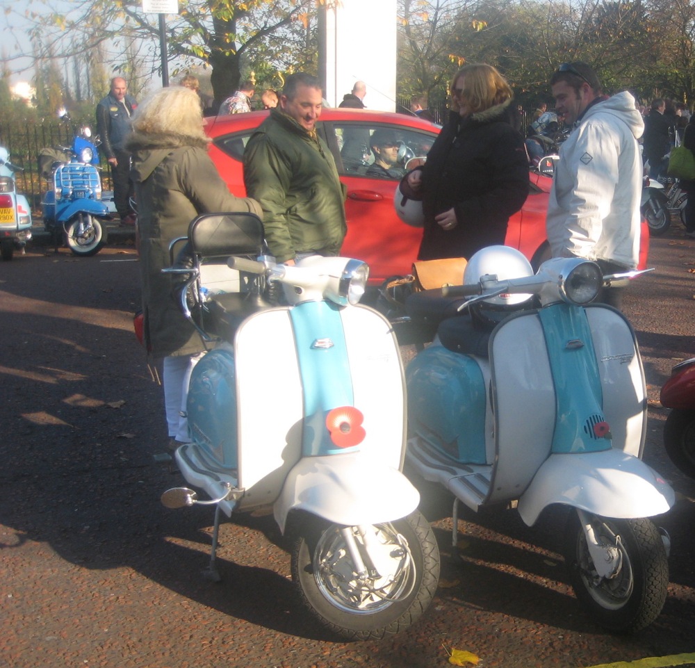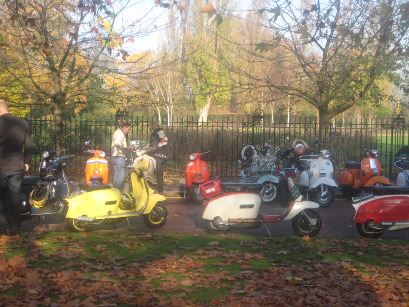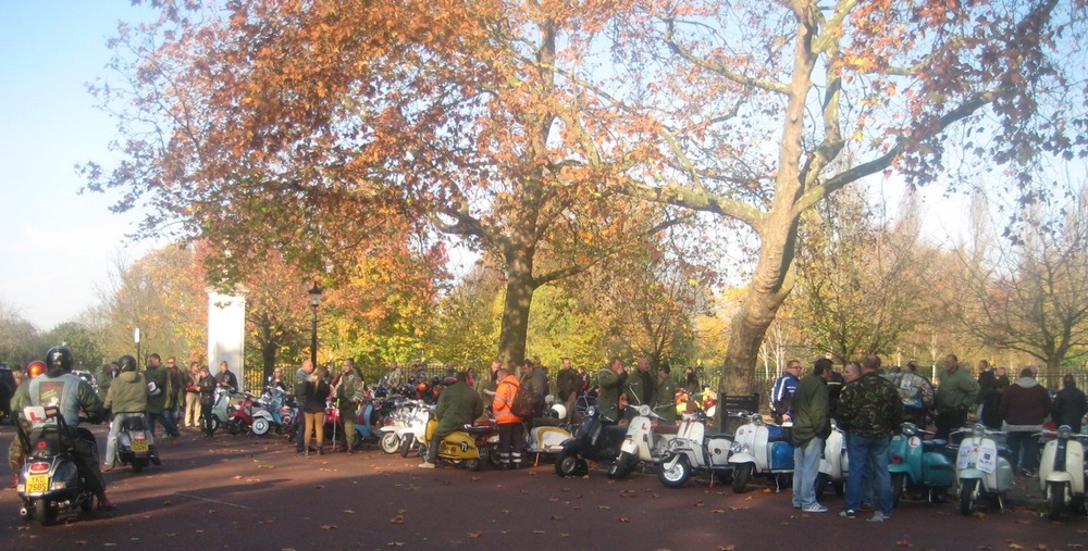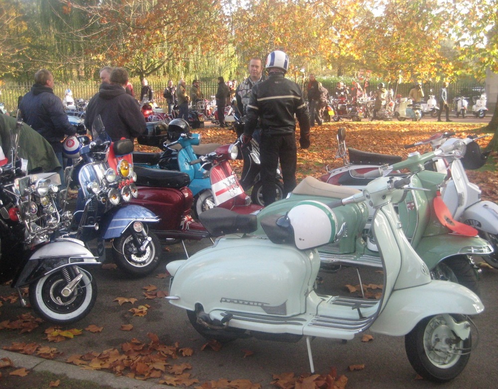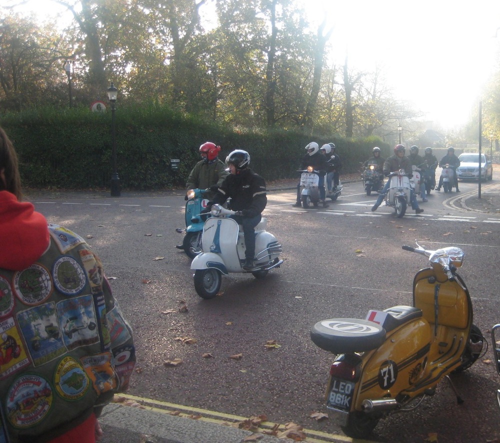 What a great day I had yesterday on the Wasps SC Ride of Remembrance… one of the highlights of my scootering year… no scrub that, one of the highlights of my year fullstop. A beautiful autumn day, with the sun shining through the misty light, London has never looked better. I’m told it was a lot better than last years weather where it was persisting down… well, when I got there, about 8.30 am, after a lovely ride up through Richmond Park and west London, there were four other scooters. When we left, I reckon it was closer to four hundred. Probably more.