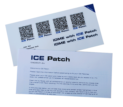 ICE Patch QR Codes to make it easier and faster for the emergency services to access your vital information. There’s no need to search your person for a medic alert bracelet. Your health and contact information is at their fingertips. It’s inexpensive and impossible to leave at home. The emergency services can immediately establish who you are, who to call and access any medical information that could help to save your life. They know it’s accurate and current, because you gave it to them. Some Police Motorcycle Units are now wearing ICE Patches themselves. For instance, the Essex Police motorcyclists seen on Channel 5’s Emergency Bikers are seen to sport ICE Patch QR codes on their helmets. A set of four identical ICE Patches costs £10 plus applicable sales tax and postage. 10% of all of our revenues are donated to road safety and rescue charities and initiatives. Only available here.