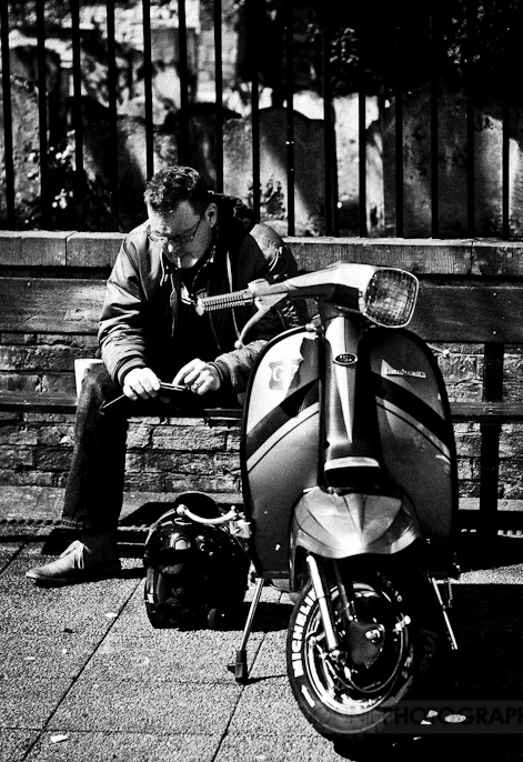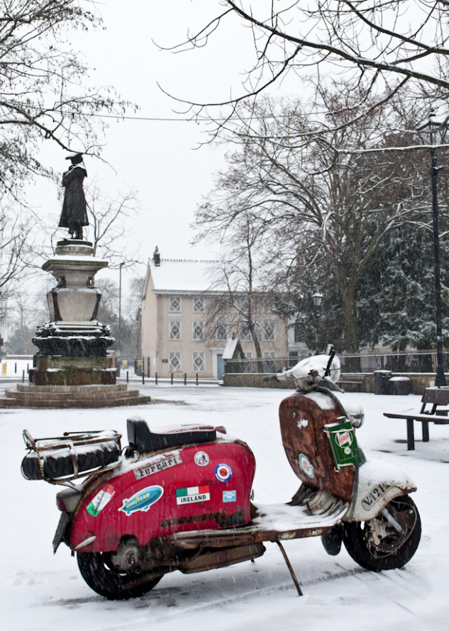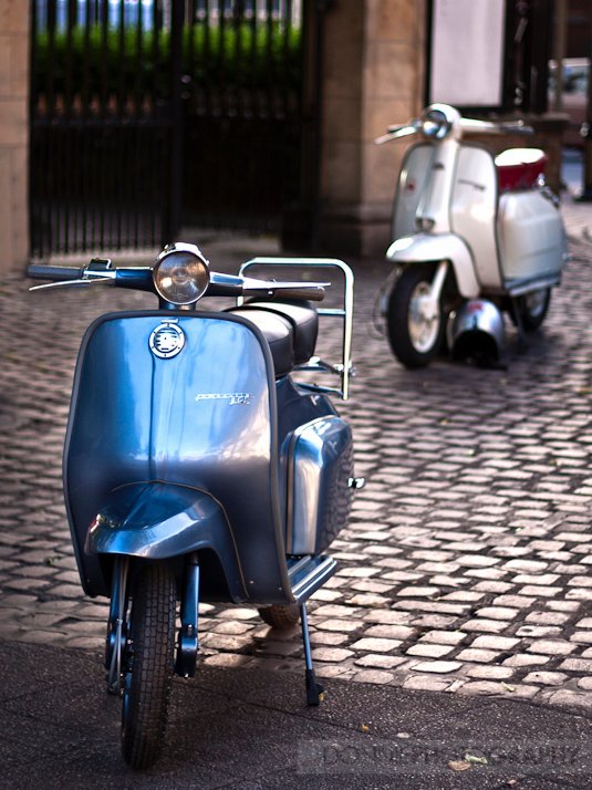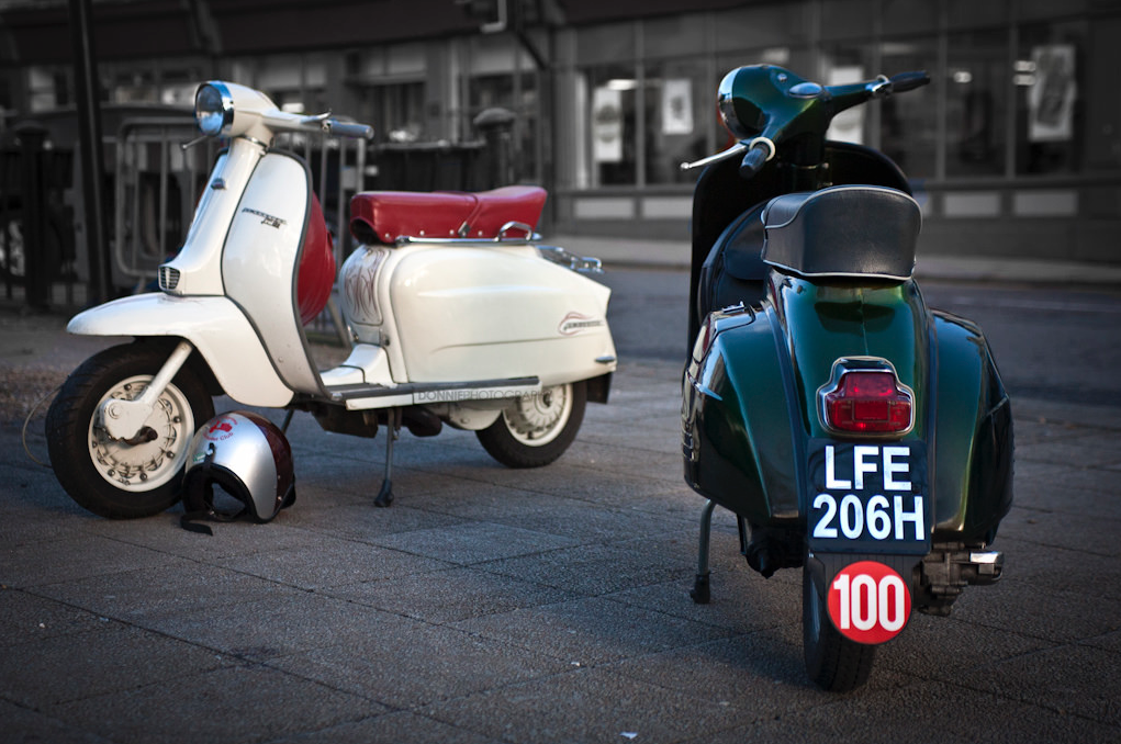 According to Tumblr, where I nicked this image from erm, found this… this is a picture of Carnaby Street, London, 4th April 1966. It was a photoshoot for opening of new Tomcat Shop. The model Christine Spooner and designer (now property developer) Irvine Sellar. The Lambretta, I think, is a TV175. The cheetah was called Kinna. Rumours that Kinna came from Cheam are unsubstantiated!