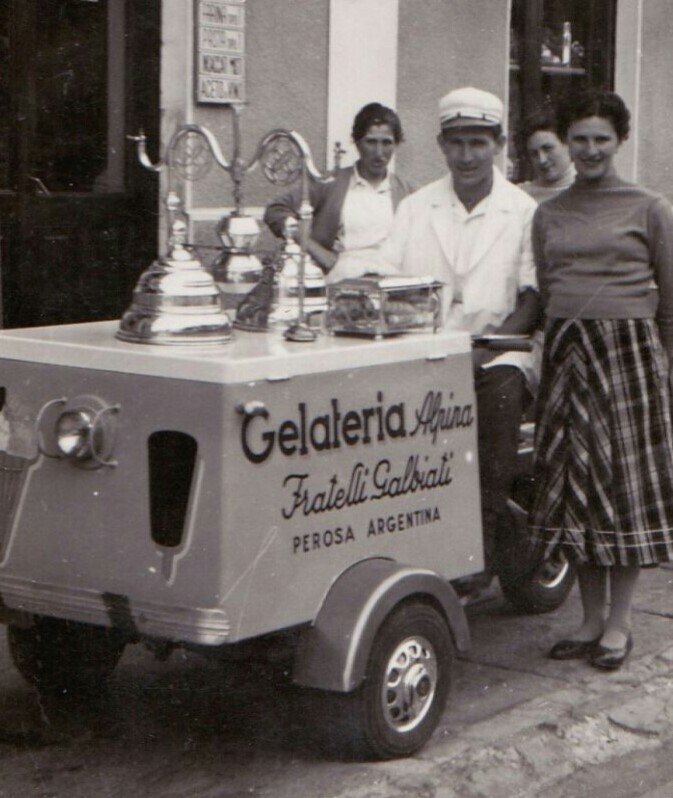 Bruno was lucky enough to meet the original owner, Sr. Galbiati, and stayed with him for an afternoon in 1998. Since then, he’s been in contact only with his daughter, who gave him the original photos featured here, and the original cork tubs where she made ice cream. Originally, the ice-cream was kept cold with a mixture of ice and salt, but Bruno designed a modern cooling system that preserved the original wooden box. It can now hold 32kg of ice cream in four flavors, and is equipped with a battery-powered compressor that can maintain -20 degrees Celsius for two days independently.