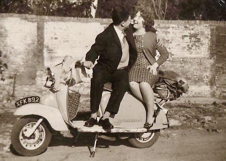 I feel privileged to post this image from my new online pal Steve Morris – of his Mum and Dad on their Lambretta. This photos captures a perfect instant of joy! Steve has a fantastic Lambretta collection that I’m going to post more about soon!